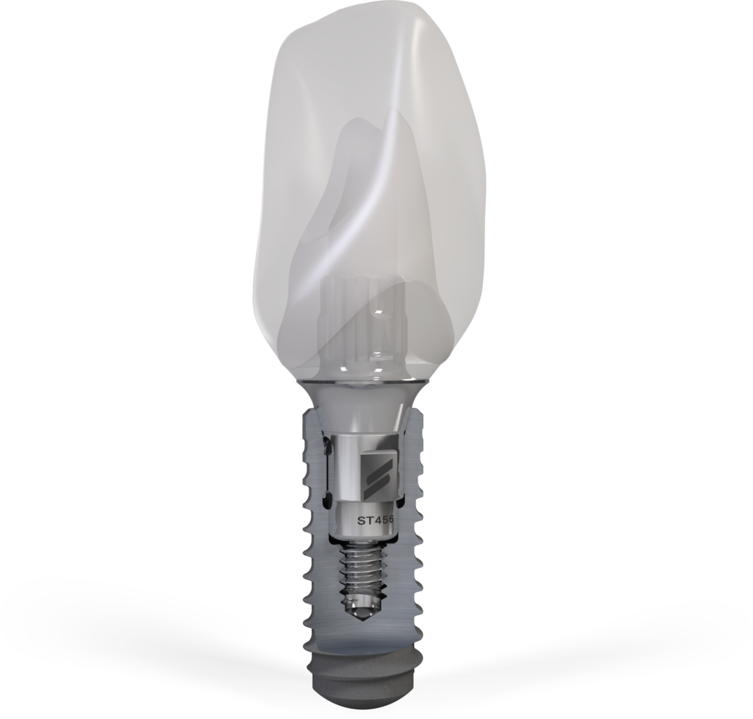Kui implantaat on täielikult luustunud, kinnitatakse sellele ühendusdetail ehk tugipost. Seejärel valmistatakse ja paigaldatakse keraamiline püsikroon, mille toon ja kuju sobivad ülejäänud hammastega. Valmis lahendus näeb välja ja toimib nagu oma hammas.